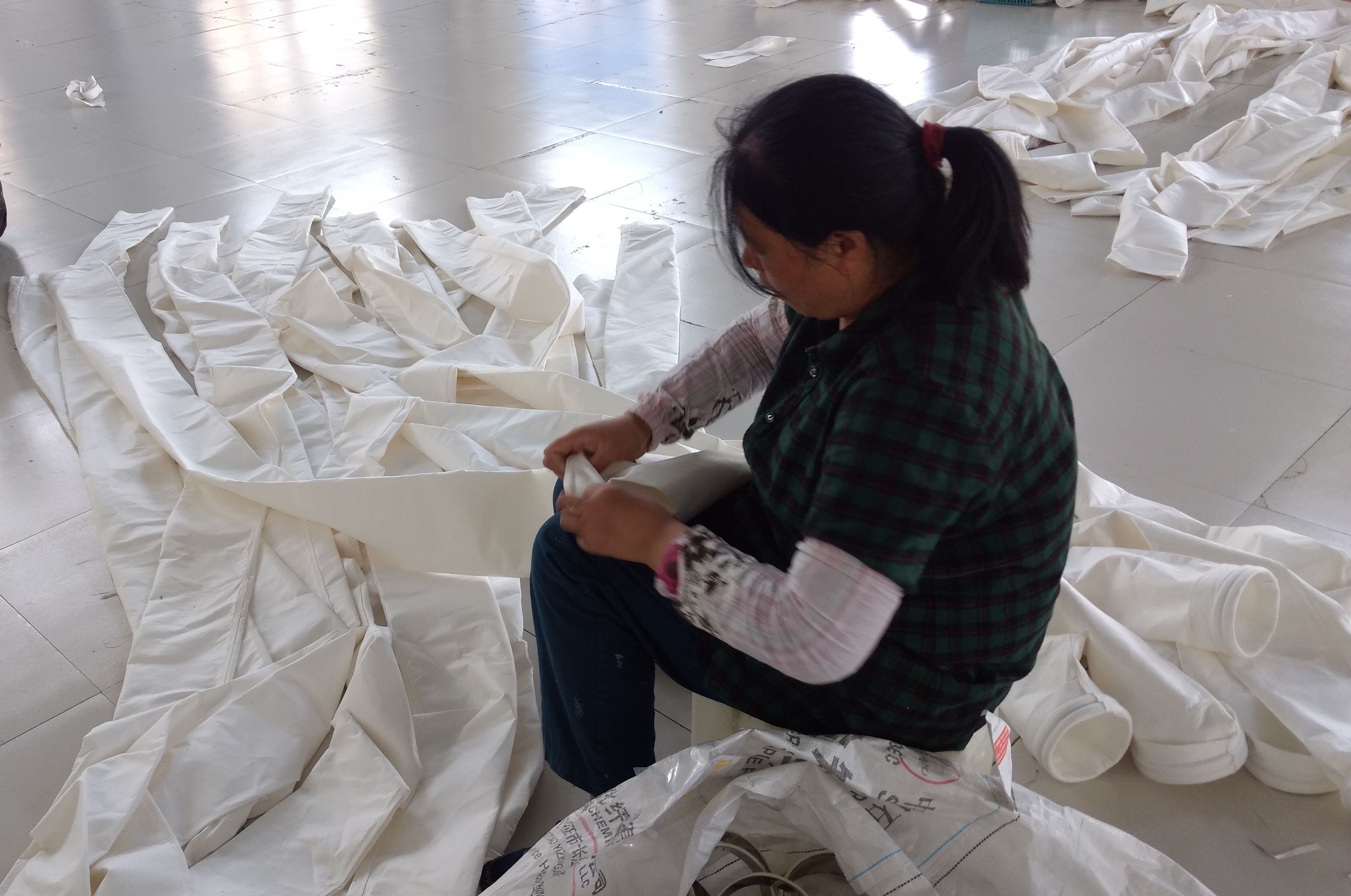 后就是要能够满足透气性要求,织物除尘滤袋的透气性是其一个重要的过滤性能,除尘滤袋的吸水性对透气性有决定性的影响,天然纤维和合成纤维在常温下,有吸收含尘气体中水分的特性,因而粘附溶解含尘气体中的微尘,堆积在除尘滤袋上或更进一步起化学变化逐渐失掉透气性,从而降低甚至失去过滤作用,以致必须拆下来更换除尘滤袋,就除尘滤袋的使用特性来看,它的憎水性往往和清灰的难易程度联系起来。
