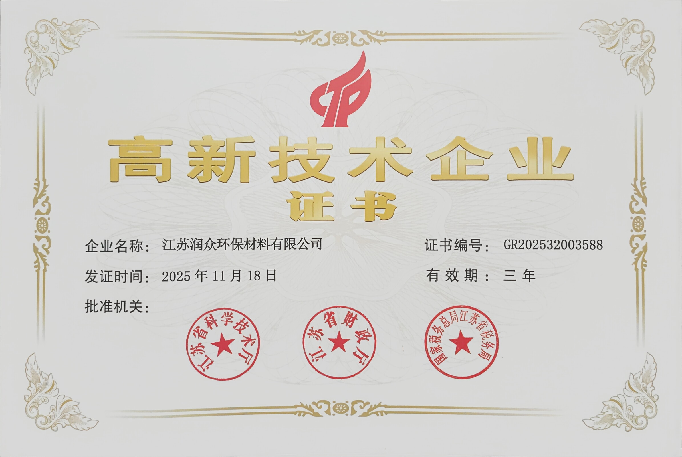 再次荣获高新技术企业证书
